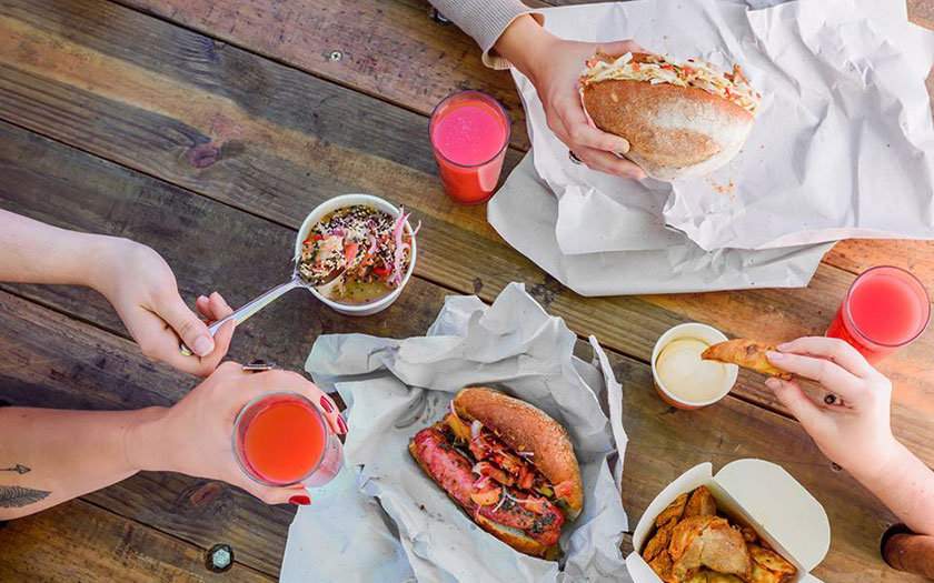 Claro, se quiser fazer a rota tradicional há várias barracas que servem o gigantesco sanduiche de mortadela com queijo.