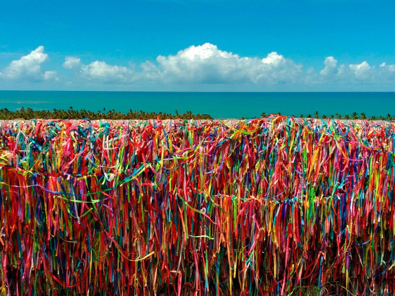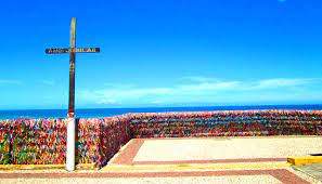 Logo atrás da igreja está localizado o Mirante Arraial D’ajuda famoso por ser onde as pessoas amarram as fitinhas e fazem seus pedidos.