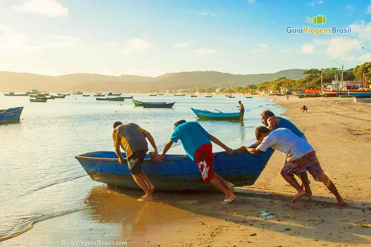 Repleta de barcos e pescadores é um bom lugar para fazer compras de mariscos e diversos frutos do mar direto dos pescadores. Por se tratar de uma baía o mar é muito tranquilo e a cor da água fica um pouco turva por não tem muita circulação, mas, não se preocupe que o local é muito limpo e pode aproveitar tranquilamente o mar e a orla da praia.